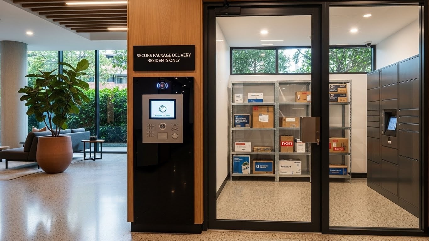 Instead of leaving parcels on the doorstep, couriers place them behind locked gates, inside lobbies, or inside dedicated parcel rooms.